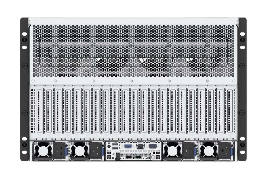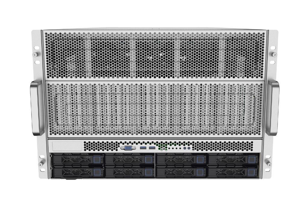 支持 2颗 AMD EPYC™ 9004/9005系列处理器,最大TDP 500W; 支持8张600W GPU,每张卡支持 PCle 5.0 x16,提供高效异构算力; CPU-GPU 直通设计,高效低延迟,相较 PCle Switch 架构大幅提升数据传输效率。 |